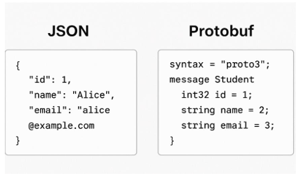 Json or XML are also serializing the data. But they aren’t fully optimized for the scenarios where the data is to be transmitted between multiple microservices in a platform-neutral way. That’s why developers prefer protocol buffers over them. Think of it like packing your belongings into a small, neat suitcase so they take up less space and are easier to carry. Key Benefits:- Smaller and Faster: Much more efficient than JSON or XML.
